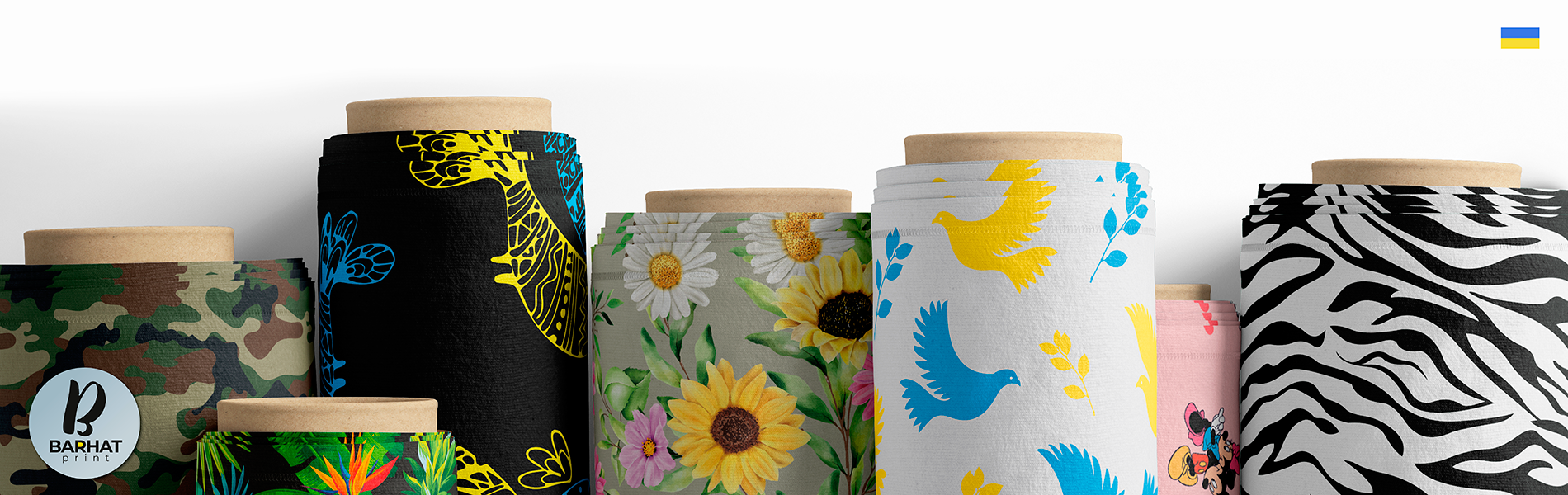 Компанія «БАРХАТ ПРИНТ» - це виробниче підприємство з нанесення зображення на тканину методом сублімації (повнокольоровий друк на тканині та друк крою на рулонах тканини для швейного виробництва, виготовлення прапорів і декорацій, інтер'єрний та рекламний друк на тканині).