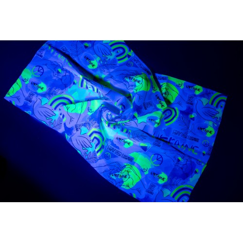 Флуоресцентний друк на тканині. Повна передача кольорів. Стійкість до світла, перепадів температур, прання, екологічно чисті барвники.